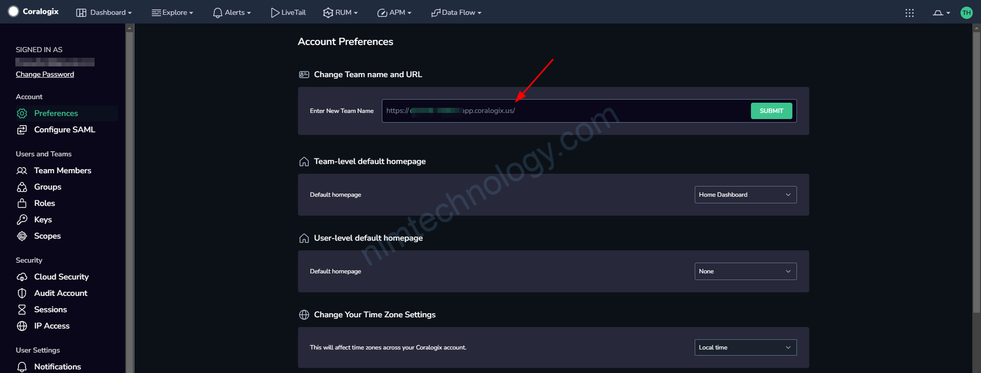 Bạn có thể nhắn tin trực tiếp với coralogix hoặc như mình vào phần setting: