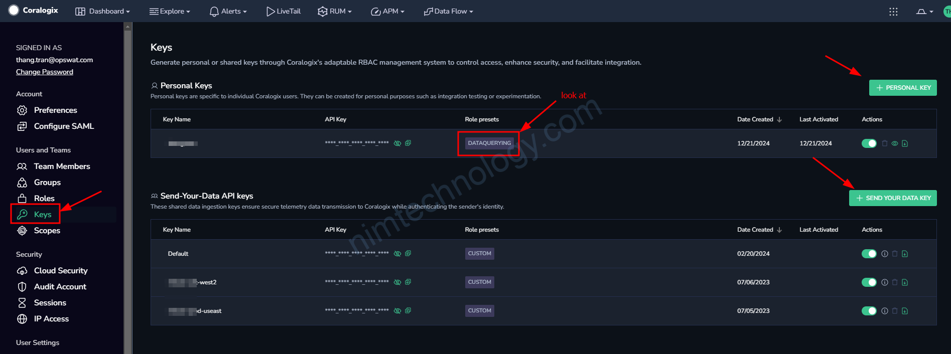 Tiếp đến bạn tạo 1 api key với role là DATAQUERYING