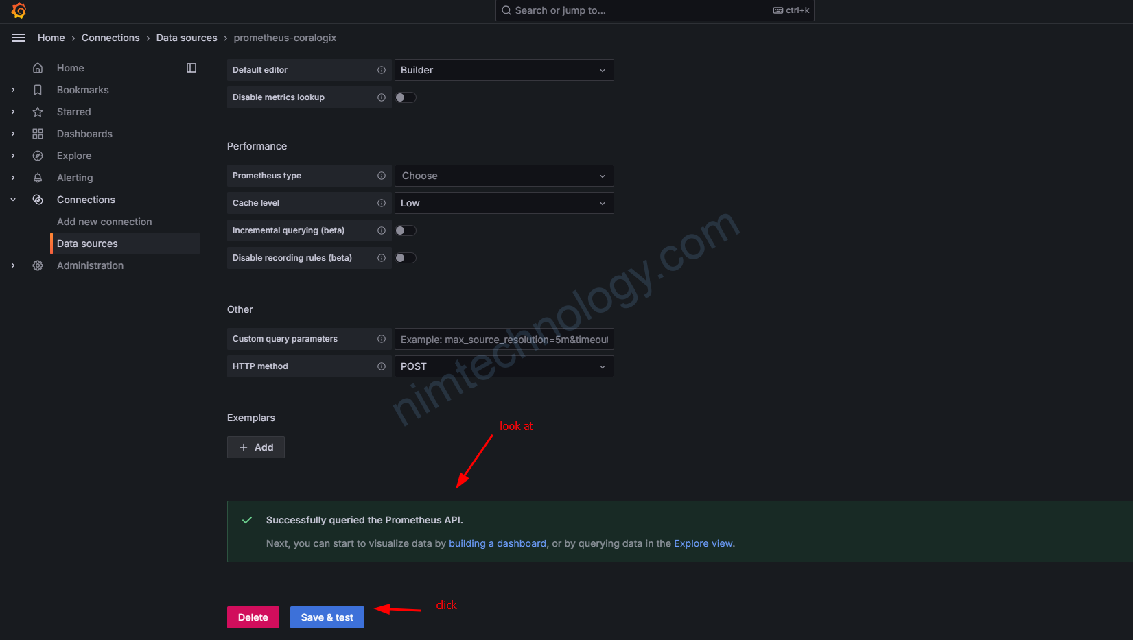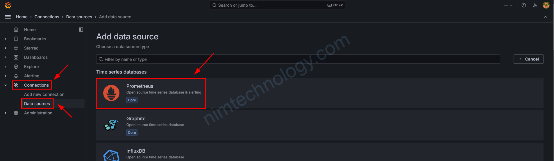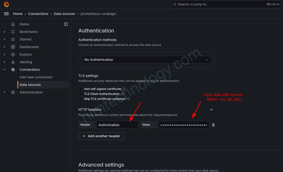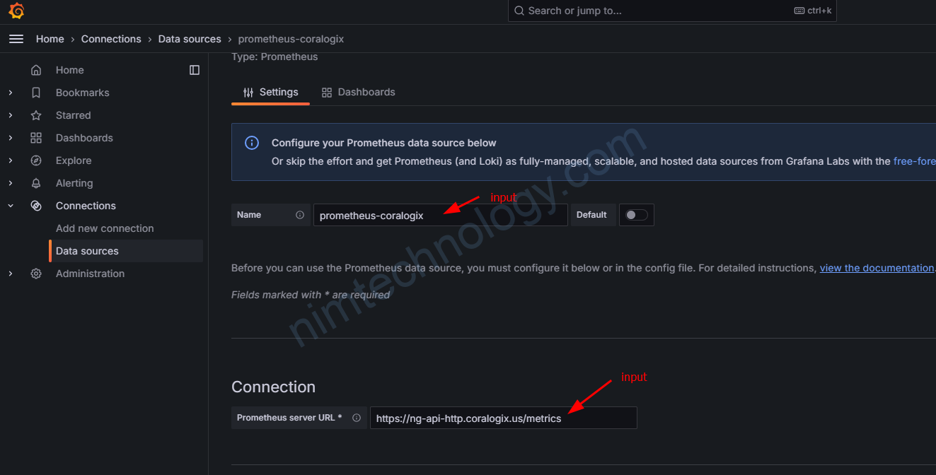 Tiếp đến bạn đi sang Grafana để setup connection: