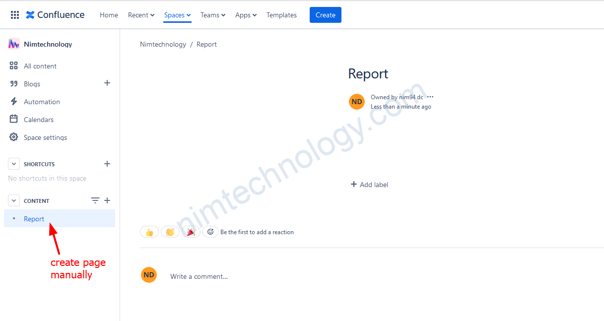 Trên confluence chúng ta sẽ tạo nhưng bài viết thì nó được gọi là page.