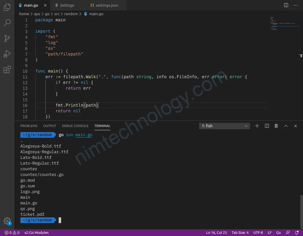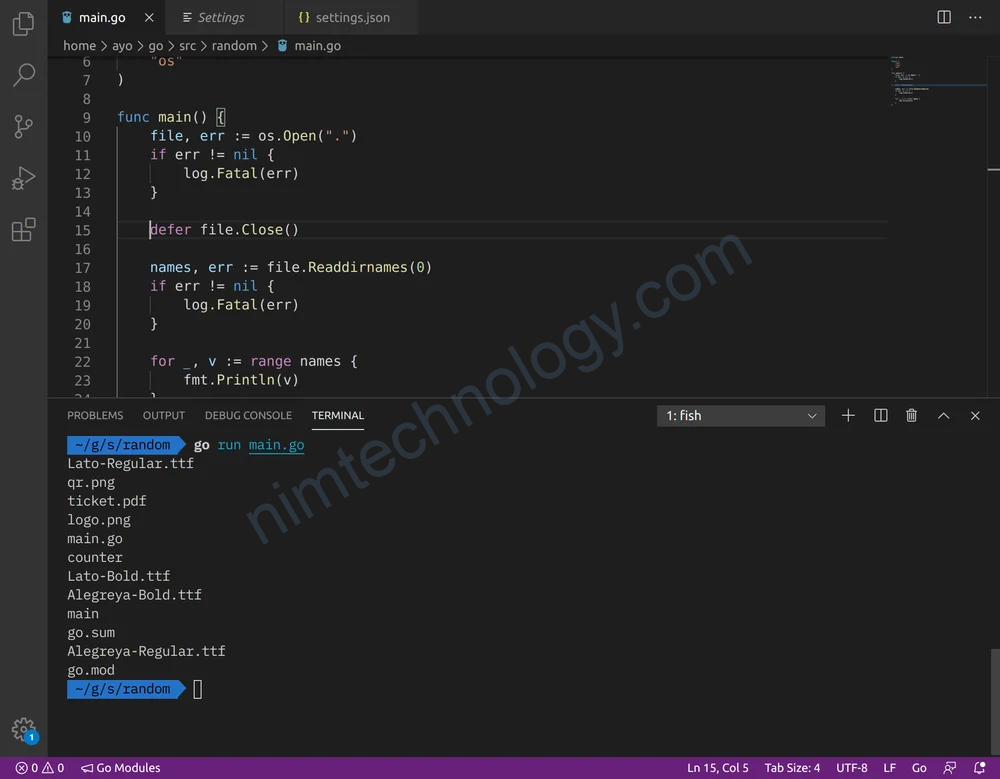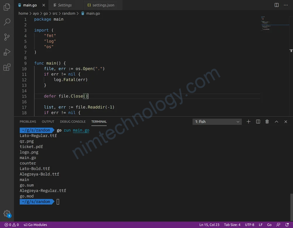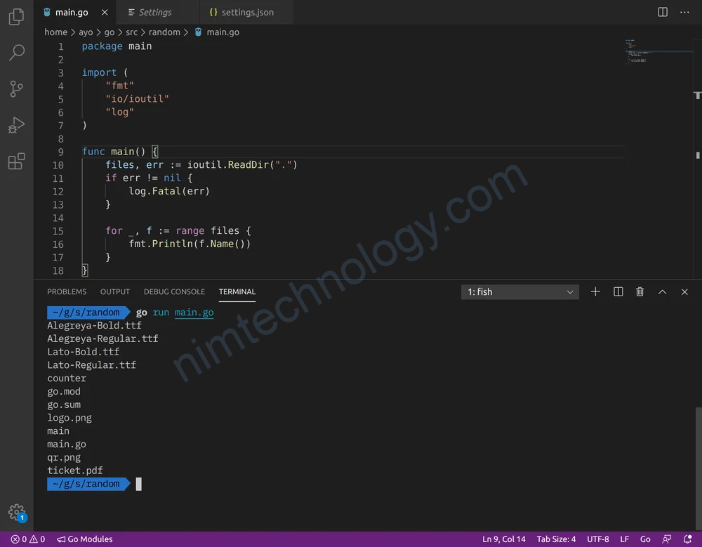 As you can see from the screenshot below, the contents of the counter directory is printed unlike when we employed ioutil.ReadDir above.