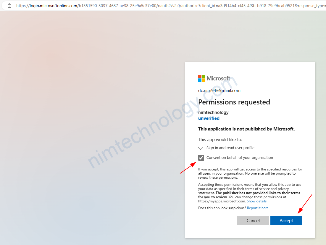 ở đây tại mình chưa cấp quyền “User.Read Mail.Read” nên mình sử dụng được line –data-urlencode ‘scope=User.Read Mail.Read’