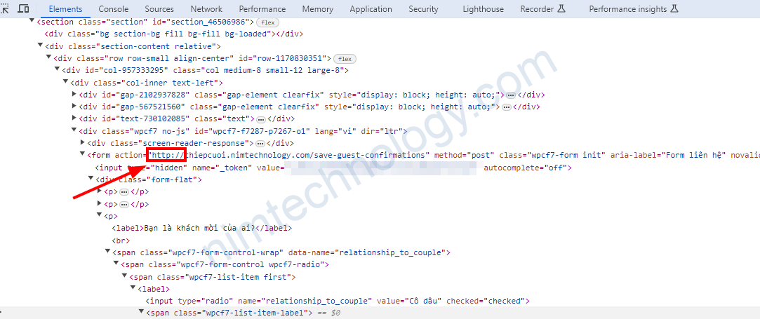 Lý do là action của bạn đang post sang 1 http chứ không phải là https