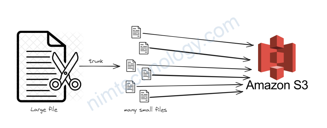 Imagine an S3 “trunk file” as a large file that’s broken into smaller parts, making it easier to manage, transfer, or store. When dealing with huge files (like big videos or backups), S3 uses this method to make the process faster and more efficient.