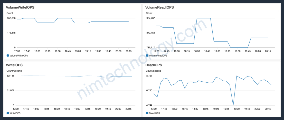 VolumeReadIOPs: The average number of billed read I/O operations from a cluster volume, reported at 5-minute intervals