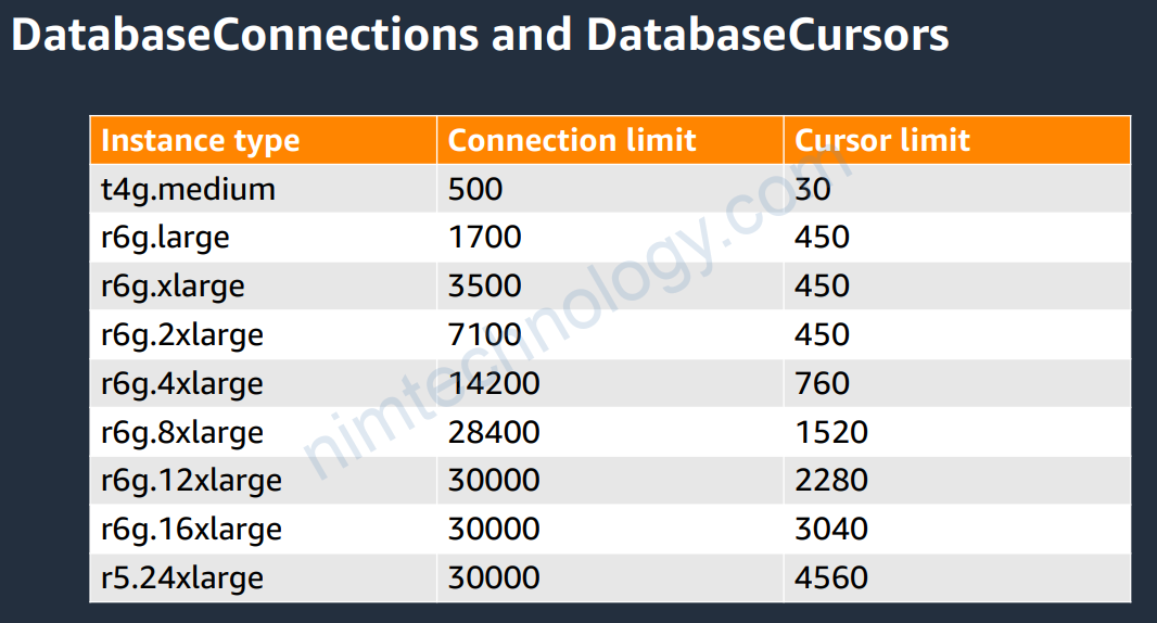 DatabaseCursors: The number of cursors open on an instance taken at a one-minute frequency.
