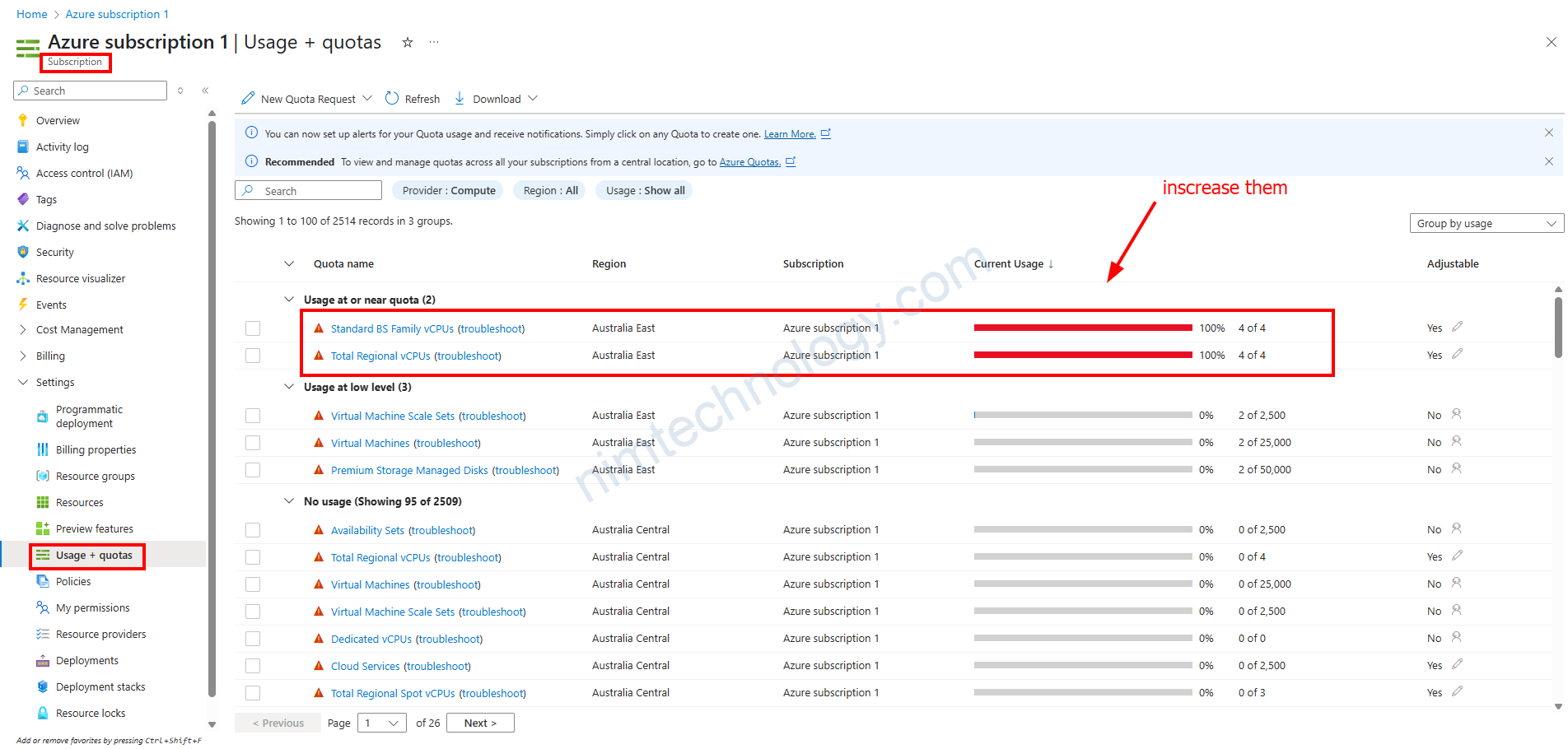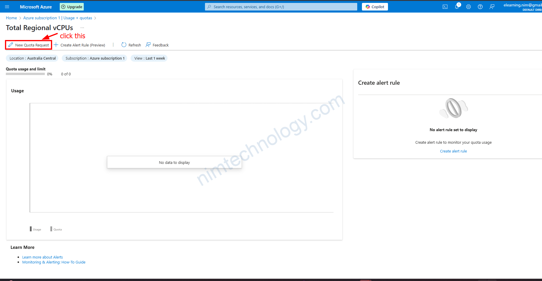 Bạn có thể follow các step bên dưới và request inscreate quotas