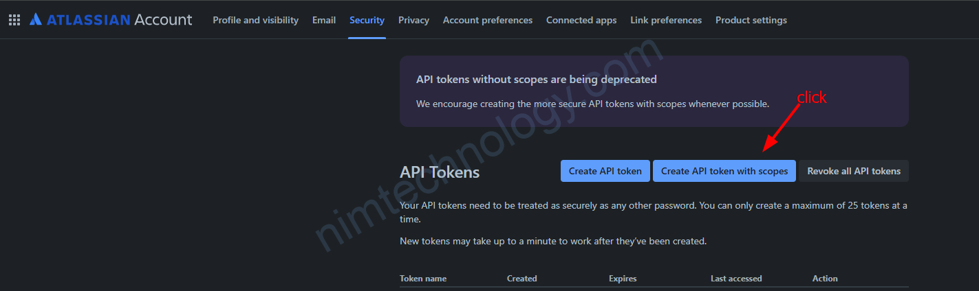 Chúng ta sẽ cần create API Token để thay thế.