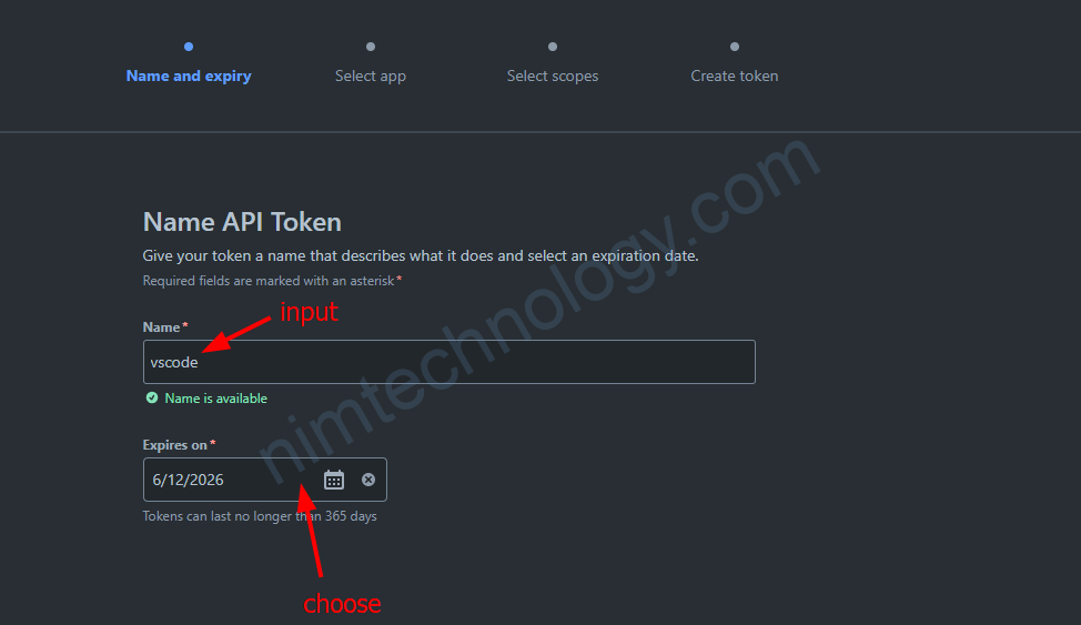 Bạn đăng tên dễ nhớ cho API token này và chọn thêm expire time.