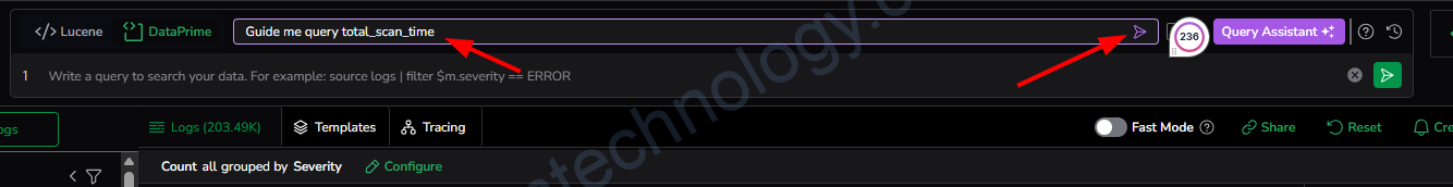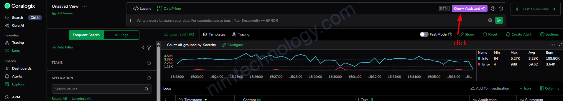 Đây lấy được Patent Query đâu tiên bạn có thể hỏi AI có sẵn trong Coralogix trước nhé.