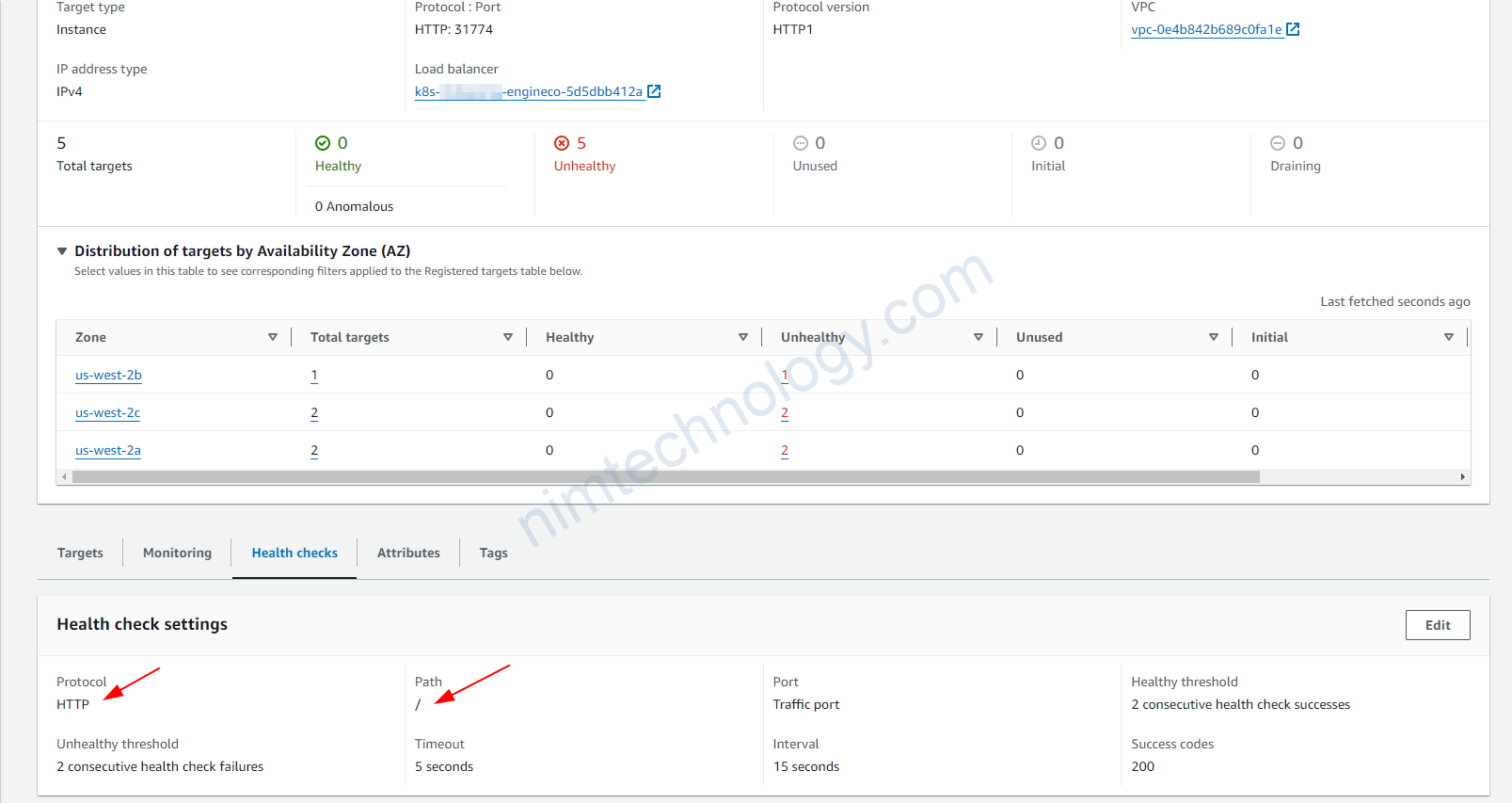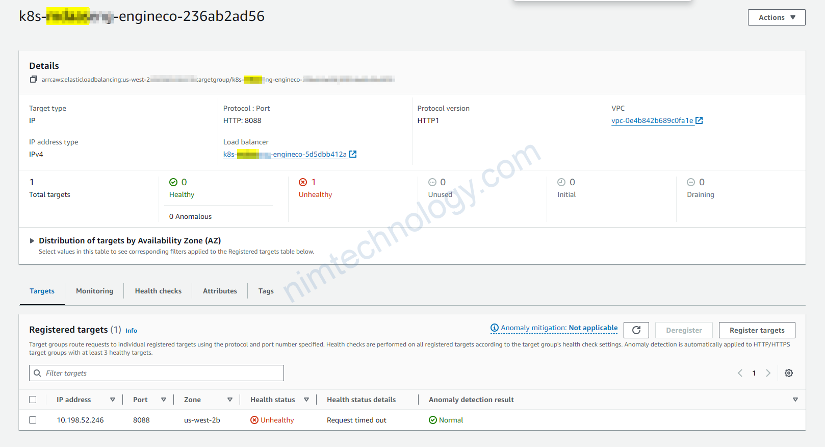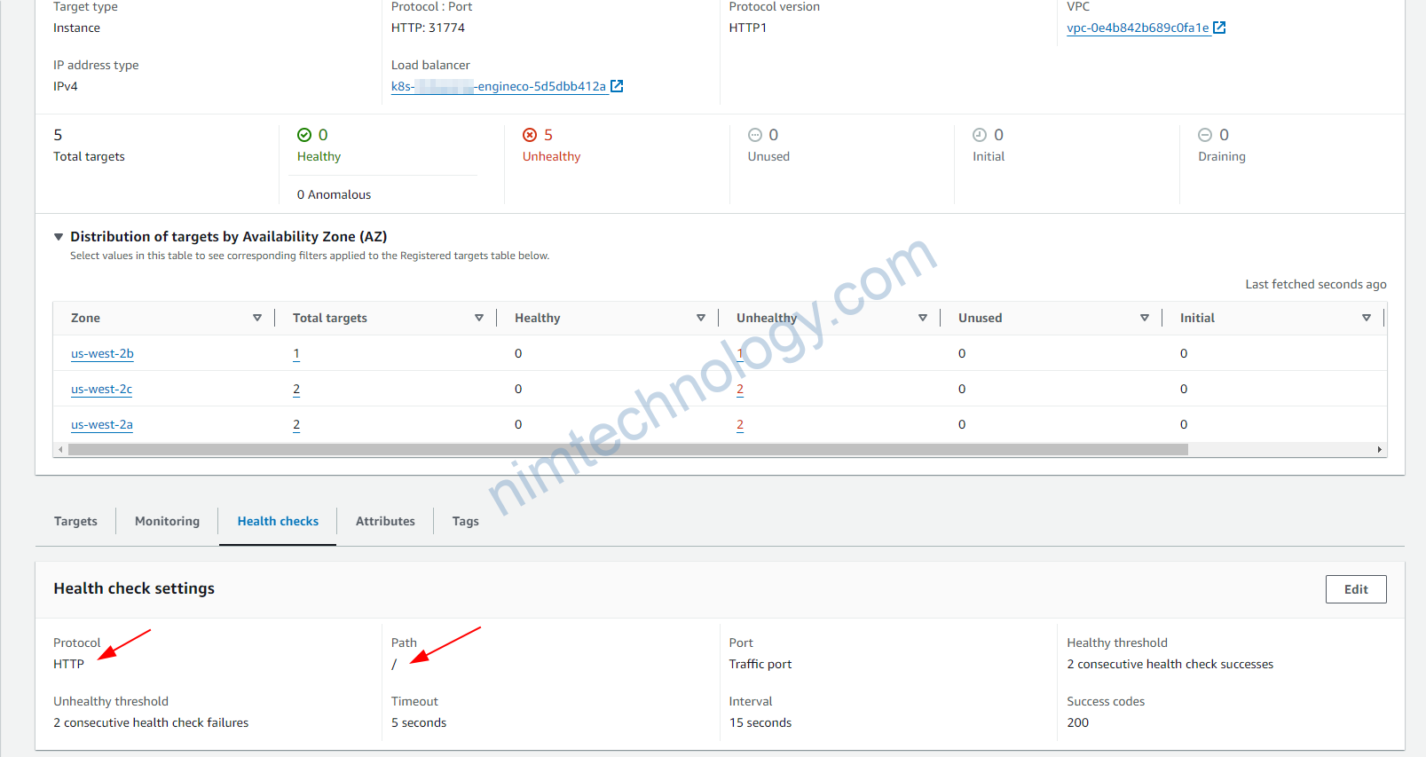 Nếu bạn thấy Target Group bị unHealthy như hình.