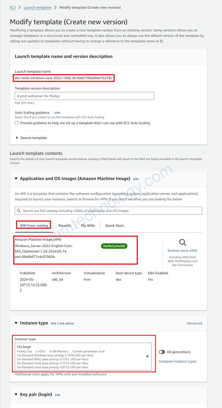 Bạn sẽ cần check lại các phân sau: Launch template name, Application and OS Images (Amazon Machine Image), Instance type