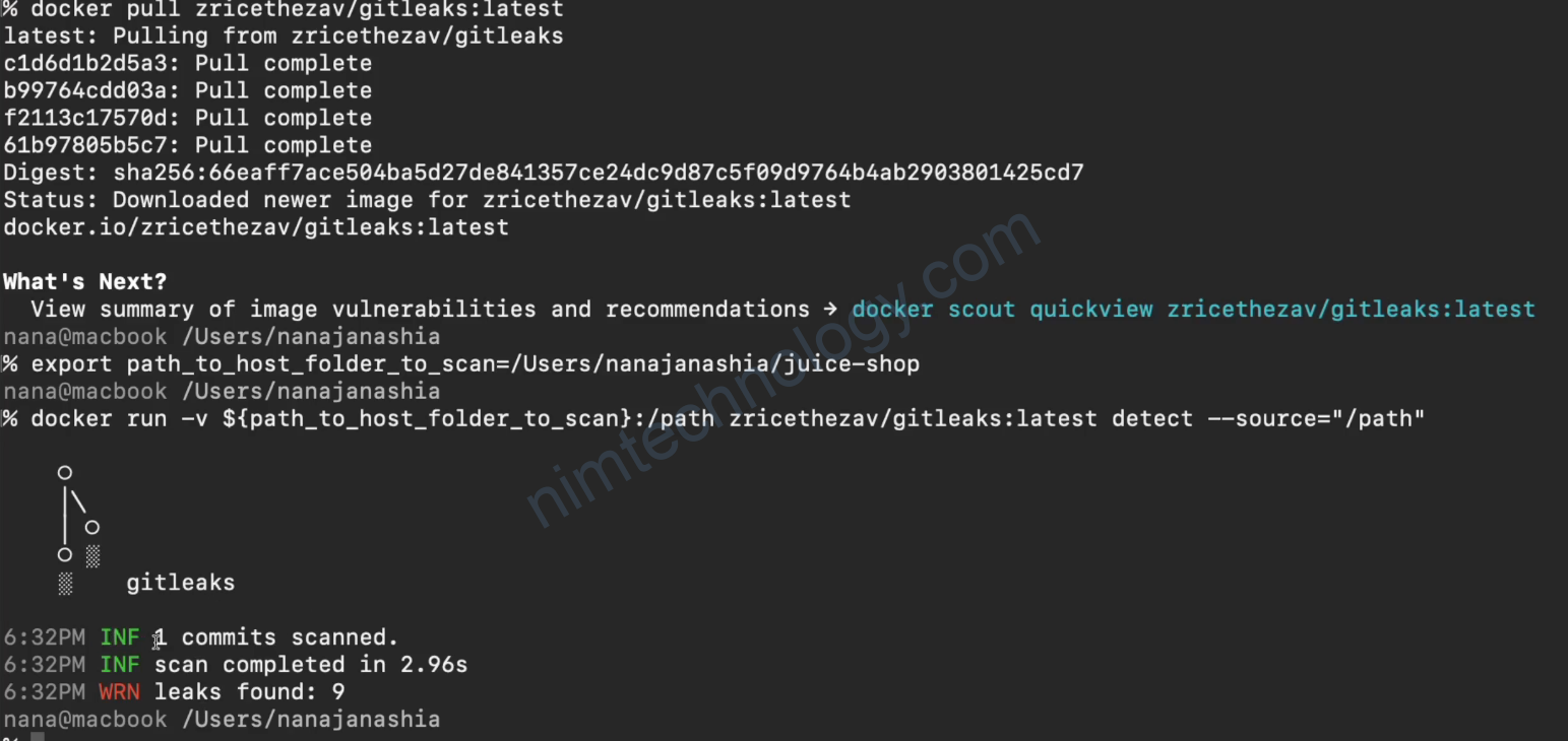Ở đây mình sẽ dụng Docker để run gitleaks