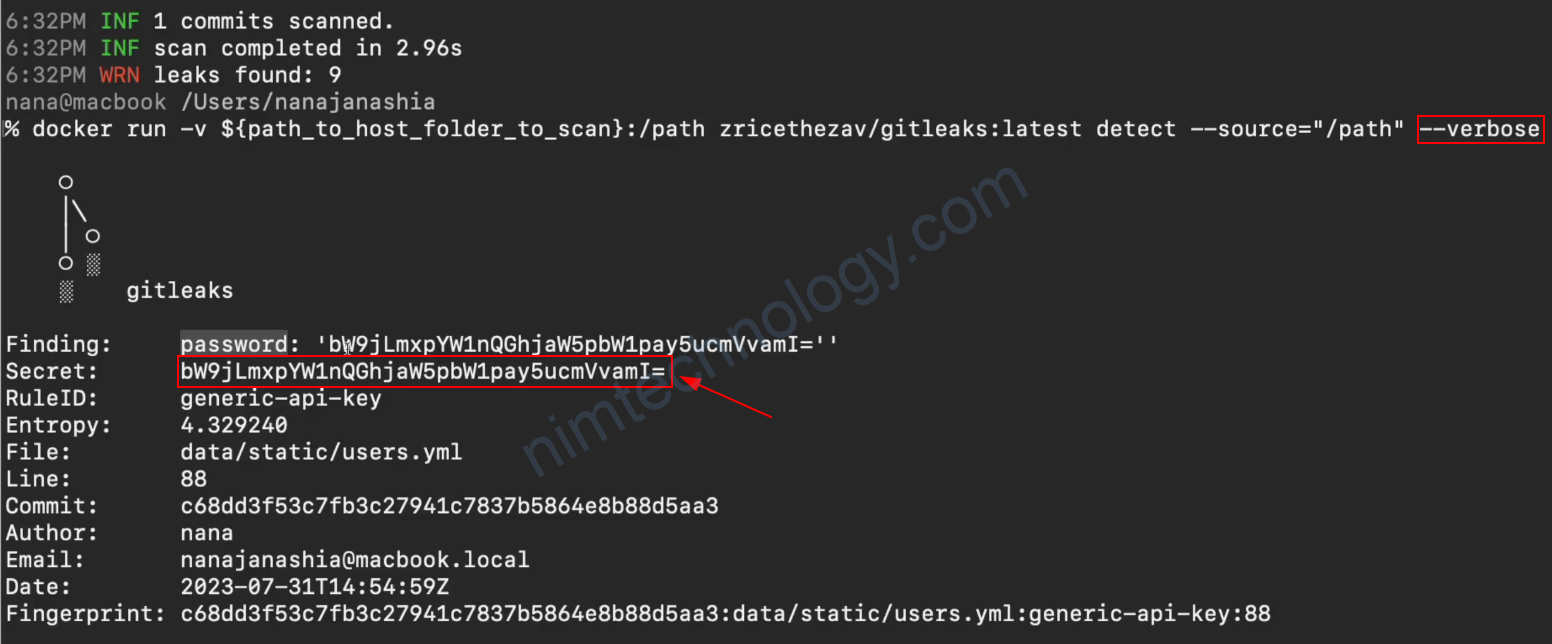 gitleaks detect --verbose --source .