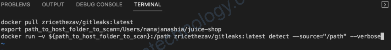 docker run -v ${path_to_host_folder_to_scan}:/path zricethezav/gitleaks:latest [COMMAND] --source="/path"
