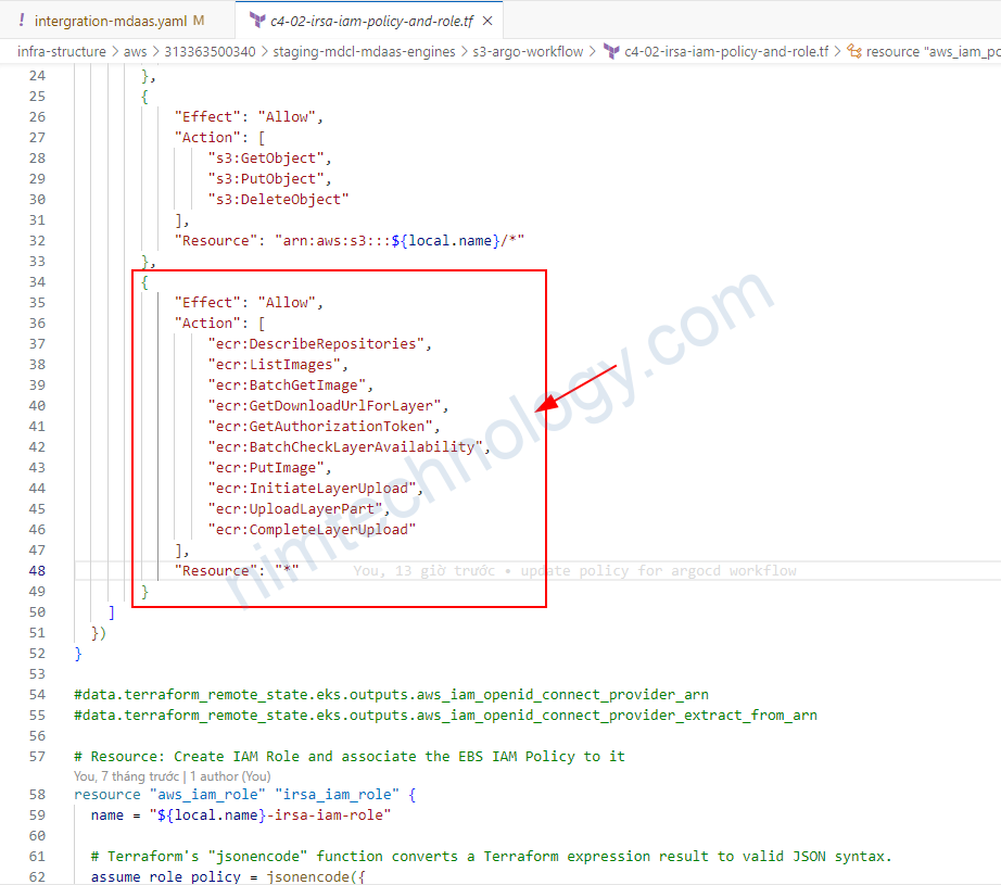 Vì mình đã setup argo workflow authen AWS vi IRSA: