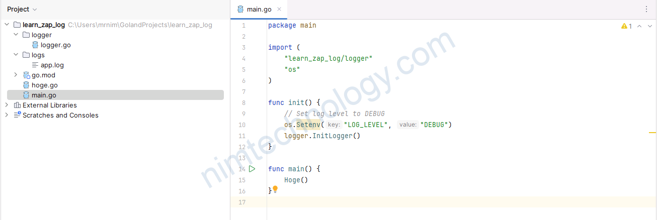 Tiếp đến ở hàm main thì bạn sẽ cần gọi InitLogger lên 1 lần