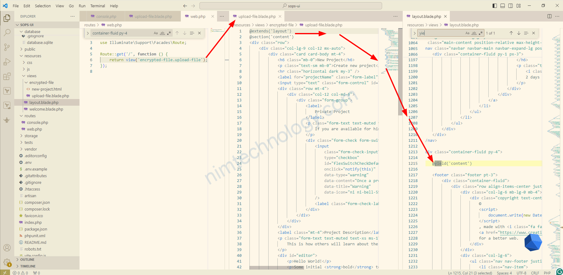 Đại loại là khi bạn call từ route vào view –> encrypted-file.upload-file