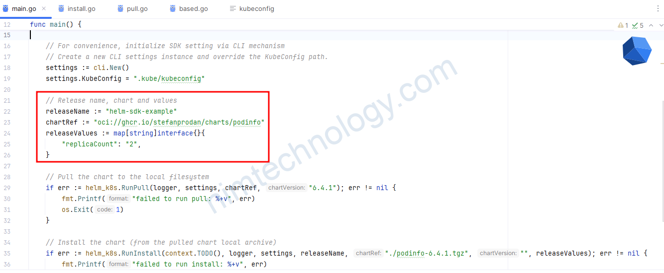 Nhưng nếu bạn muốn chủ động khai báo kubeconfig cho helm cli Library luôn thì bạn làm như sau: